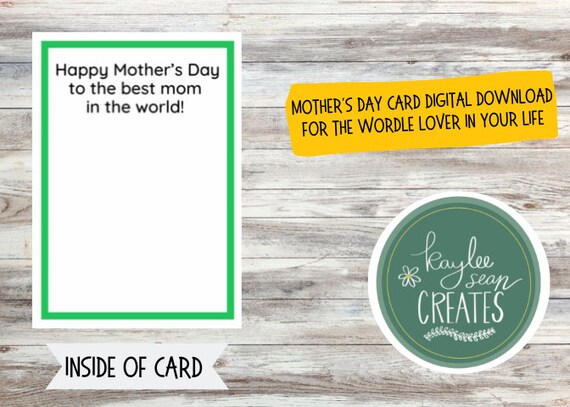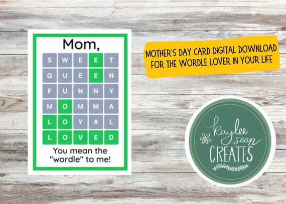 Mothers Day Card for Wordle Lover Wordle Card for Mom 5×7 Digital